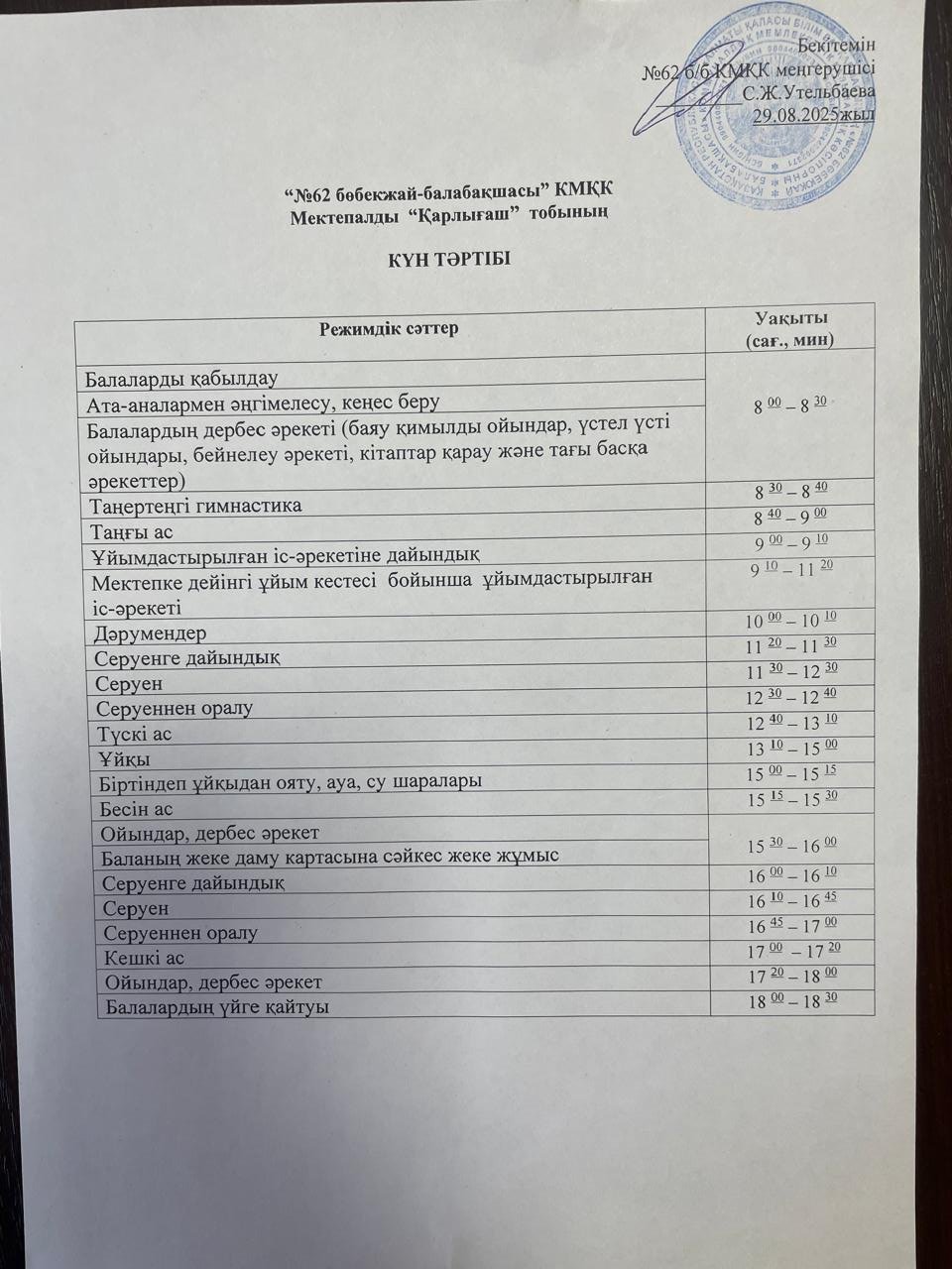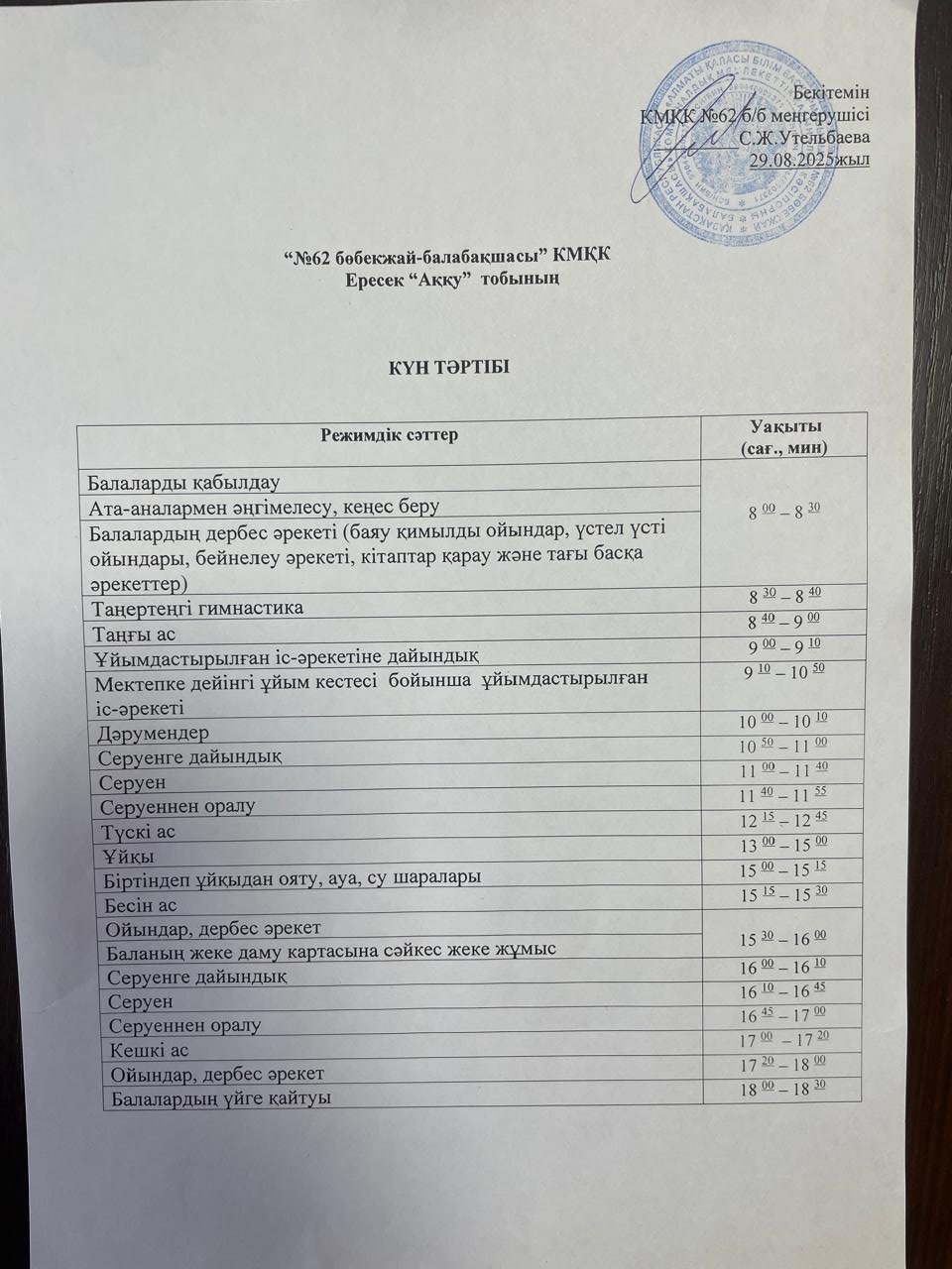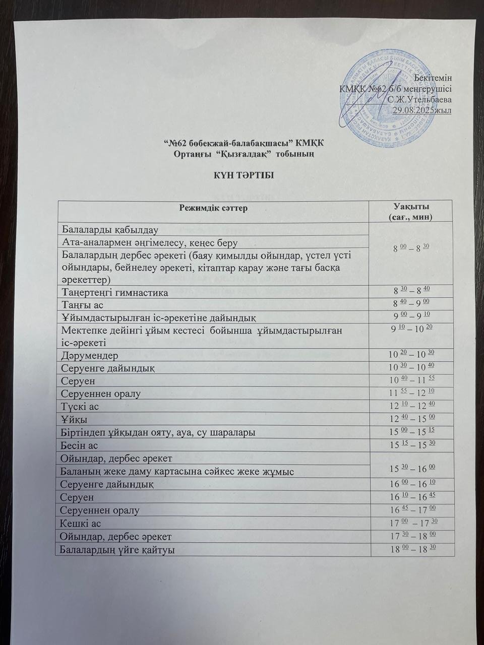 Күн тәртібі 2025-2026 оқу жылы